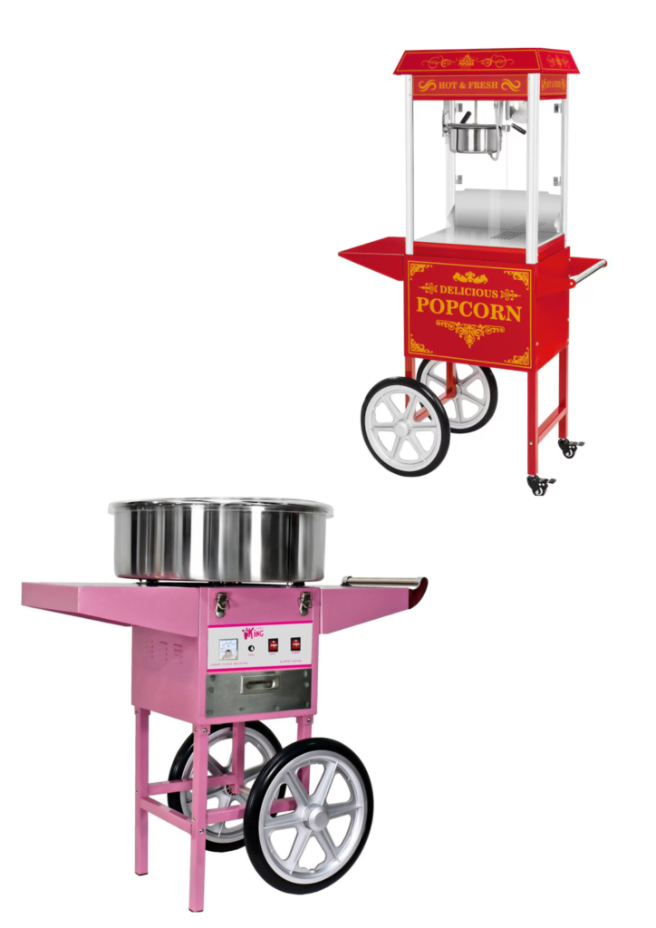 ✔ Inbegrepen bij popcorn- en suikerspinkramen: